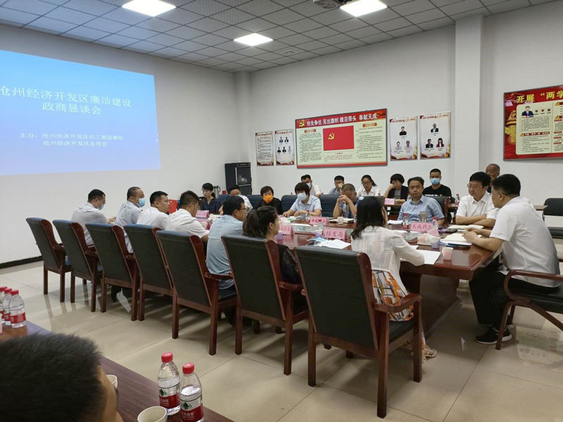 9月15日,沧州经济开发区纪工委监察组、区总商会在9游会官网首页入口组织召开了医药行业廉洁建设政商恳谈会,区党工委委员,纪工委书记、监察组组长唐小明参加并讲话。