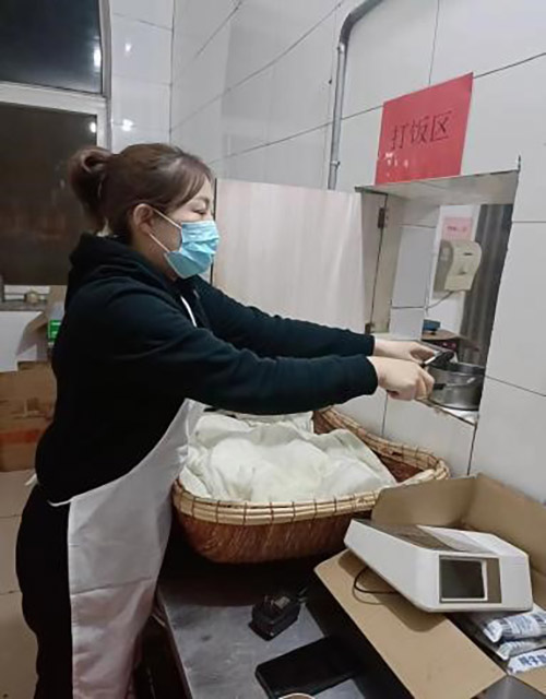 以前后勤保障部每天只准备两顿饭,而且夜班吃饭的人不算多,可现在500多人封控在单位,一天要为这些人准备三顿饭,工作量增加了两倍多。初文一边切着菜,一边笑着说:“厨师大哥们和帮厨大姐们起早贪黑,咬牙坚持工作,我们不仅要让大家吃饱还要吃好。”