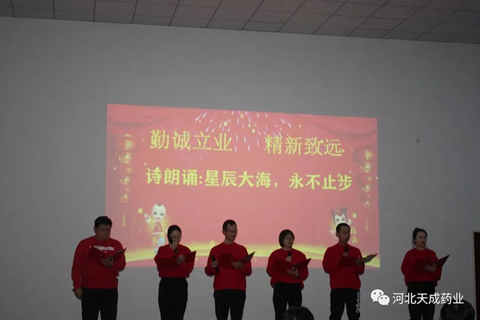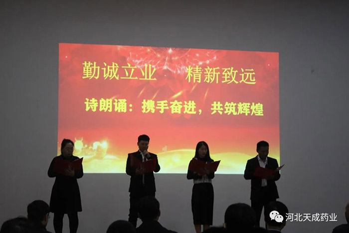 公司董事长王振刚,公司董事、常务副总经理王颢,公司董事、9游会官网首页入口药业总经理兼渤海分公司总经理孙元清,公司董事、9游会官网首页入口药业副总经理、渤海分公司常务副总经理田长有,公司董事、9游会官网首页入口药业常务副总经理王琦,及来自各分公司、各生产车间、各科室部门的领导和同事近200人出席了此次年会。