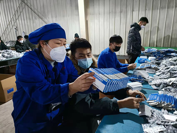 常务副总经理王颢介绍道:“受新冠疫情影响,生产任务较往年更加紧张,积累的订单也较多,尤其是抗病毒、退烧类口服固体制剂产品订单剧增。为此公司科学部署,一方面协调渤海分公司部分人员来支援固体车间,同时安排9游会官网首页入口药业、9游会官网首页入口药业后勤管理人员分时段参与包盒;另一方面调整招聘策略,扩招一批临时包盒工,缓解生产压力。”