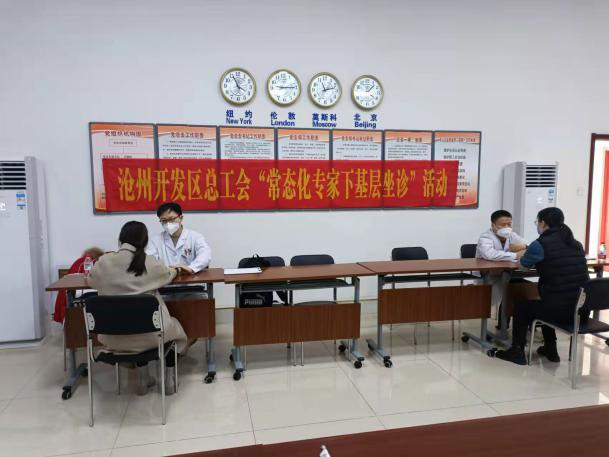 为进一步提升职工幸福指数,发挥职工健康生活室作用,公司工会联合区总工会、沧州市总工会特聘请沧州市人民医院中医科张龙、何肖两位医生来公司开展免费健康咨询和问诊活动。2月23日下午,三分厂会议室成了临时义诊室。两位专家正襟危坐,仔细辩证,耐心回答职工的询问,有针对性提出治疗或者调理方案。专家们精湛的医术和内心细致的态度得到大家一致好评。
