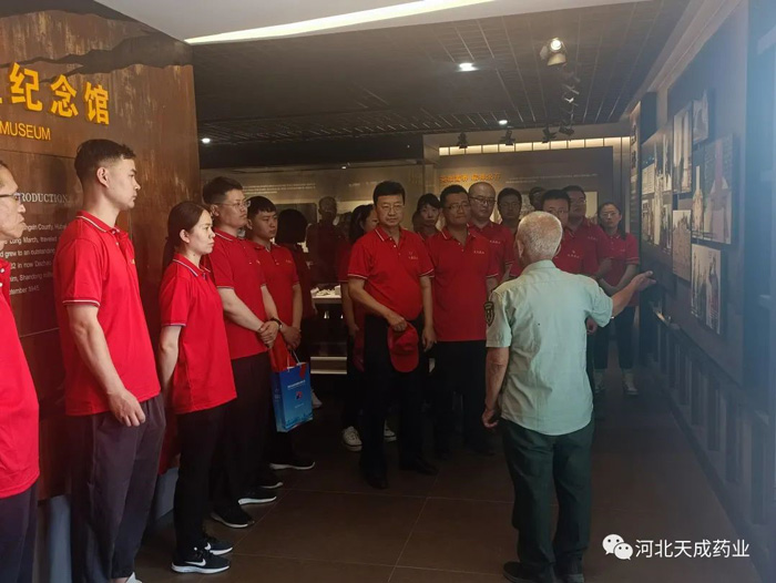 最后,讲解员孙津生对黄骅烈士短暂而辉煌的一生做了概述,并结合党的二十大以来,人民生活的变化表达了自己的看法。孙津生老人已经年过8旬,但是他讲起黄骅烈士的生平事迹依然慷慨激昂,饱含深情。他说战争年代闹革命就是爱国,和平年代搞祖国建设就是爱国,爱国情怀要传承。他对身为制药人的我们提出了殷切希望,希望我们站在制药战线上,一定要担负起“制好药,为人民”的使命。