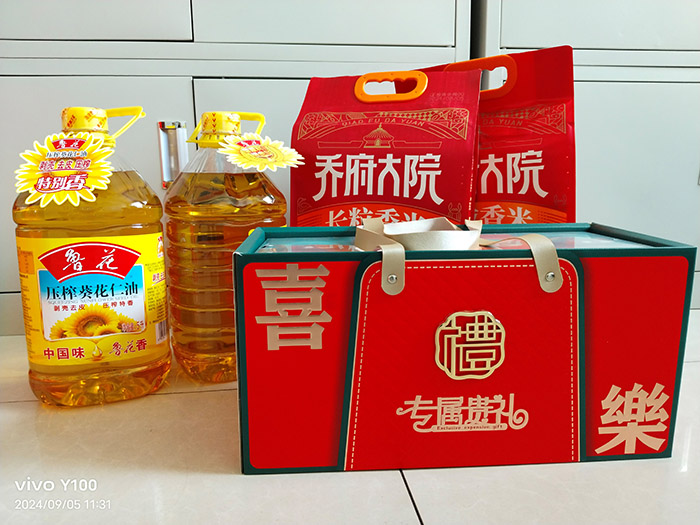 此次福利挑选了传统的月饼,以及品质优良的食用油和大米。月饼作为中秋佳节的传统美食,承载着团圆的美好寓意。而食用油和大米则是日常生活中的必需品,实用又贴心。这些福利不仅体现了公司对员工的关爱,也为节日增添了喜庆的氛围。
