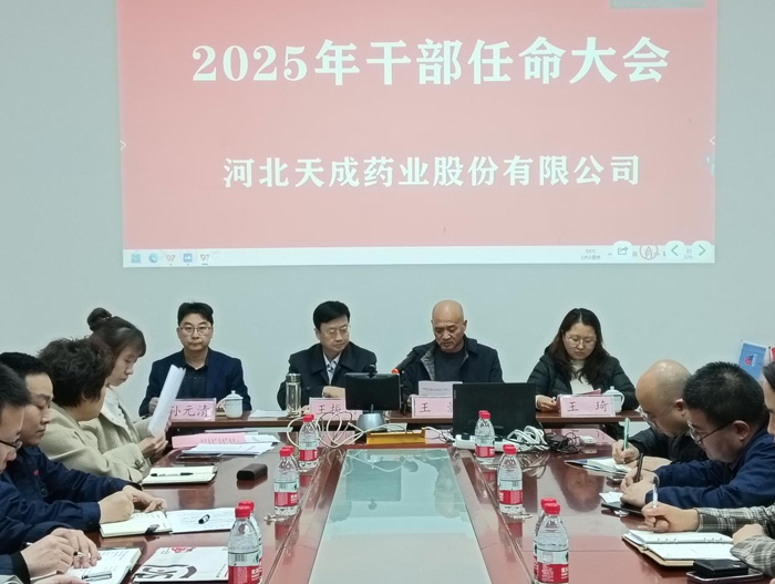 董事长王振刚在会上阐释了此次任命中所蕴含的公司发展方向与深远意义。目前,公司构建了“研发+原料+制剂+销售”的全产业链发展模式。为更好地服务公司发展需求,新一届干部管理团队被划分为生产管理中心和经营管理中心,实行生产与经营并行发展的策略。