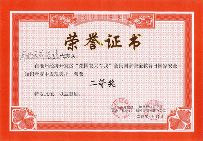 沧州经济开发区举办“强国复兴有我”国家安全知识竞赛活动 9游会官网首页入口药业代表队荣获二等奖