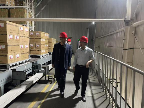 调研期间,蒋福森一行深入公司成品仓库等重点区域,实地查看仓储环境、消防设施及智能化物流系统运行情况,详细了解企业安全生产制度落实、风险隐患排查及应急处置机制建设等工作。在听取孙总关于企业构建“全员、全过程、全链条”安全管理体系的汇报后,蒋福森对我公司通过智能化、自动化手段降低人工误操作风险、定期开展应急演练等举措表示肯定。