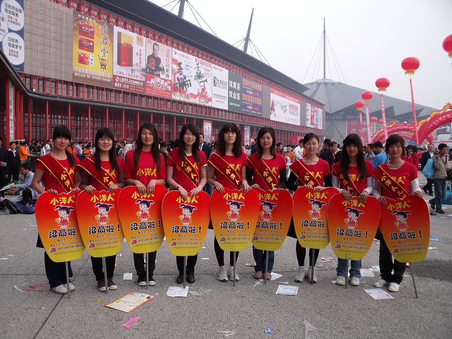 为了更好的宣传企业形象和“小洋人”品牌,特别成立了由航空学院大学生组成的美女宣传队,十名美女大学生身穿红色的“小洋人”T恤,身背品牌提示授带,高举“小洋人”宣传牌,在刘士义经理的代领下,在会场内外巡回宣传,所到之处引人注目,成为众多宣传队中的一个亮点,高质量地完成了宣传效果。