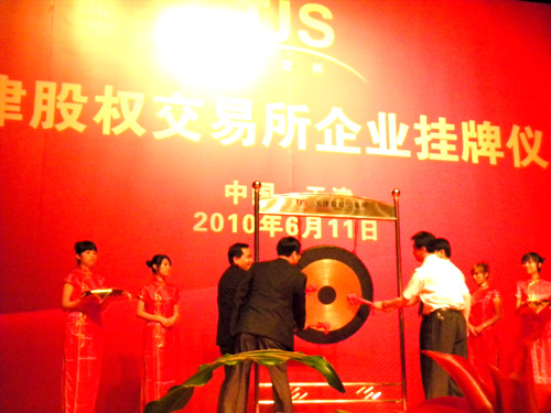 本次天津股权交易所企业挂牌仪式在天津市天津大礼堂举行,挂牌企业共计15家,来自全国各地的1000余名嘉宾出席了本次盛会。市政府副秘书长、市金融办主任王锦安、开发区管委会主任郭万义等领导代表沧州市以及开发区出席了挂牌仪式。公司董事长王振刚作为嘉宾在前排就坐。会议由天交所主办,天津市市委常委、副市长崔津渡同志出席会议并发表讲话,对15家企业在天交所上市表示热烈的祝贺。