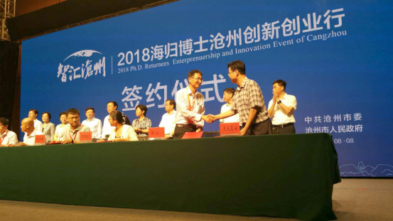 8月8日,“智汇沧州——2018海归博士沧州创新创业行”签约仪式在沧州国际会议中心举行。董事长兼总经理王振刚应邀参加盛会并与两名海归博士成功签约。