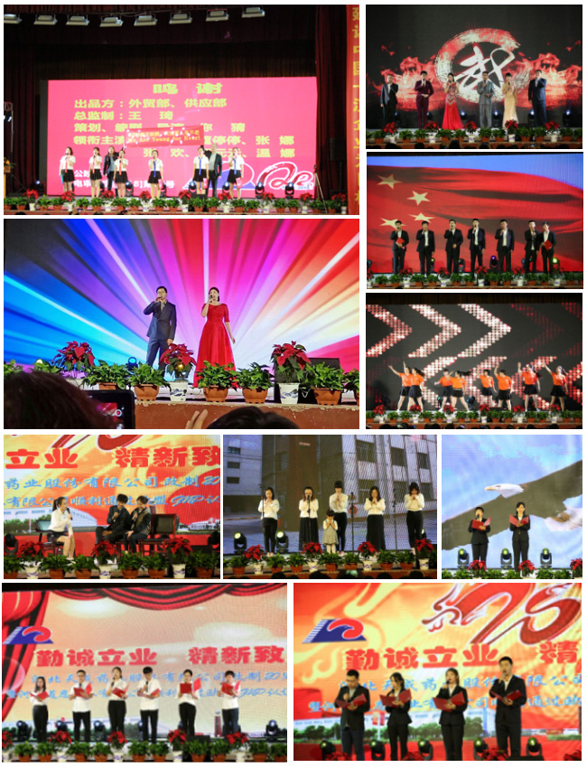<节目名称按图片排列顺序>1.制水车间带来的《歌唱祖国》|2.输液一车间大合唱《今天是你的生日,我的9游会官网首页入口》|3.9游会官网首页入口药业带来的歌曲《中国9游会官网首页入口》|4.财务部诗朗诵《我们是意气风发的9游会官网首页入口人》|5.原料药车间演绎三句半《9游会官网首页入口人 9游会官网首页入口魂》|6.中心化验室带来的大合唱《众人划桨开大船》|7.固体制剂车间带来的诗朗诵《同感恩 共辉煌》|8.输液二车间带来的军旅歌曲《一二三四歌》|9.药物研究院带来的合唱《感恩9游会官网首页入口 砥砺前行》|10.针剂二车间合唱《风雨无阻》