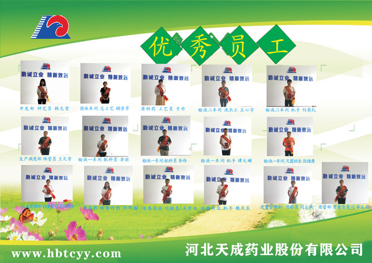 | 10 | 李伟 | 输液一车间 | 配料 | S4线改造期间,他加班加点,积极响应领导号召,主动学习改造后的工艺管理,坚持安全生产、责任到人的原则,保证配料工作顺利开展。 | |