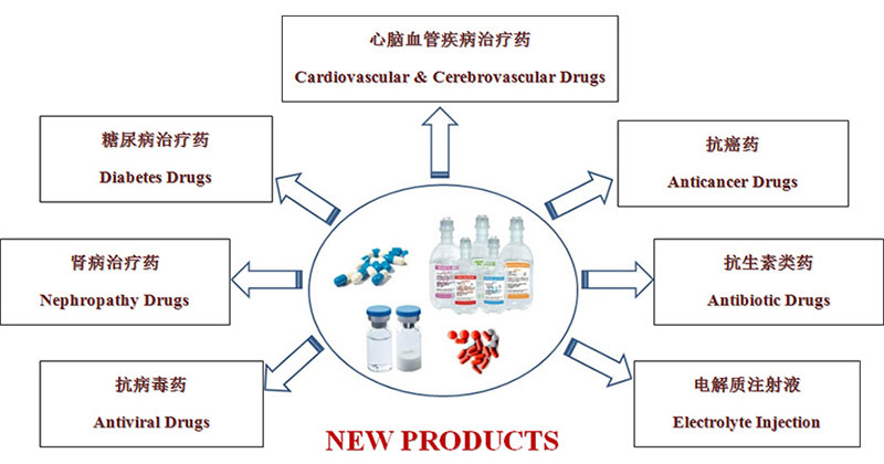 公司可生产大容量注射剂、小容量注射剂、片剂、颗粒剂、胶囊剂、粉针剂、冻干粉针剂、冲洗液、原料药(含部分中药提取物)等八大剂型200多个品规的产品。我公司以大容量注射剂和小容量注射剂为主,做专业的注射剂药品生产商。大容量注射液产品齐全,多种包装形式并存,在PP瓶、软袋、玻璃瓶输液的基础上,向双室袋、多室袋等先进的输液包装形式发展。小容量注射剂在玻璃安瓿的基础上,大力发展塑瓶(PP和PE)安瓿及西林瓶小水针剂。积极谋求高端GMP认证,由内销为主向内销与出口并重转变。